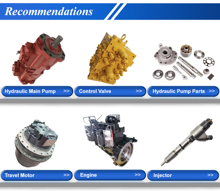 1. Pièces hydrauliques: pompe hydraulique, vanne de commande principale, cylindre hydraulique, moteur de translation de train de roulement, moteur de rotation, réducteur de translation, réducteur de rotation, pompe à engrenages, régulateur de pompe, etc.